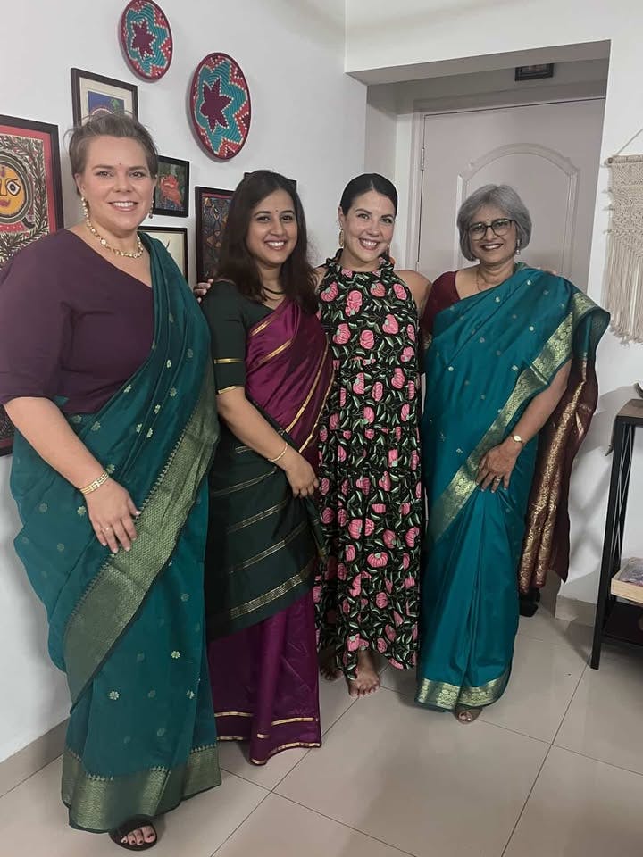 A lovely purple Kanjeevaram vintage silk saree saree with a double traditional gold zari border. The saree has a gorgeous pallu in green with zari lines on it and a contrast green blouse.