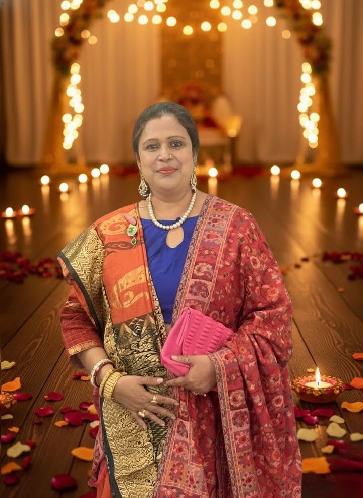 A stunning purple vintage blouse crafted in dupion silk, featuring elbow-length cotton sleeves adorned with delicate zari detailing. The blouse has a keyhole neck with a button and a deep v-back. The sleeves beautifully blend Rudraksham borders with plain fabric, creating a unique and elegant contrast. This versatile blouse pairs effortlessly with a variety of sarees. Styling tip: Match it with any Nerige cotton, vintage, or semi-crepe saree for a look that’s effortlessly timeless. The model wears the size XL